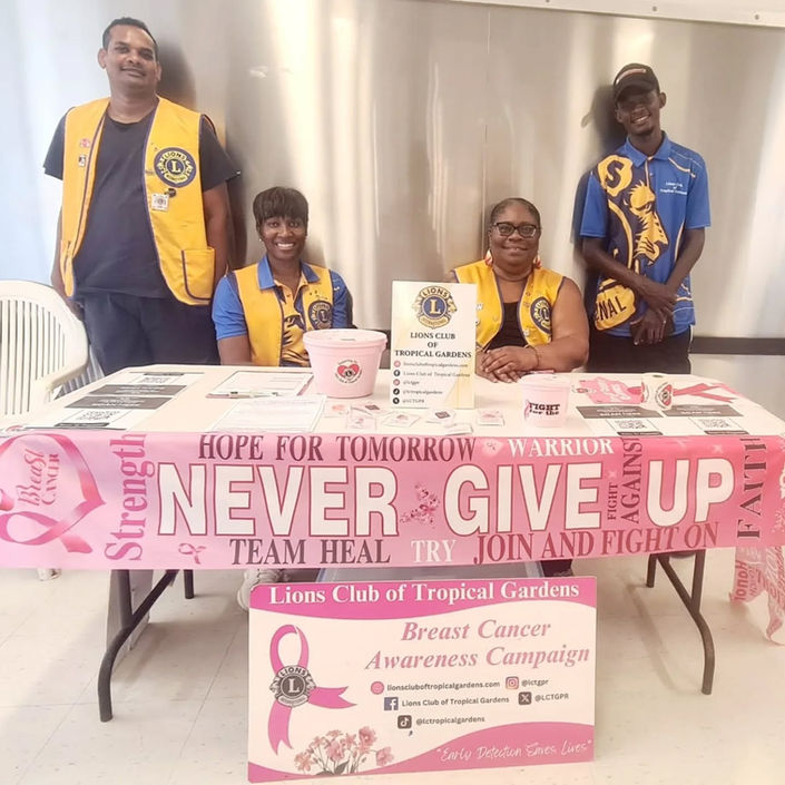 The Lions Club of Tropical Gardens is proud to continue its union with the Breast Cancer Foundation- Cayman Islands, Cayman Islands Health Services Association, CTMH Doctors Hospital, Health City Cayman Islands, Medlab, OceanMed, the Cayman Islands Cancer Society, the medical community, government departments, and businesses in promoting this awareness and providing mammograms. Early in the planning stage, costs for the mammograms are agreed by the providers; funds raised to provide the same by way of free mammogram vouchers.